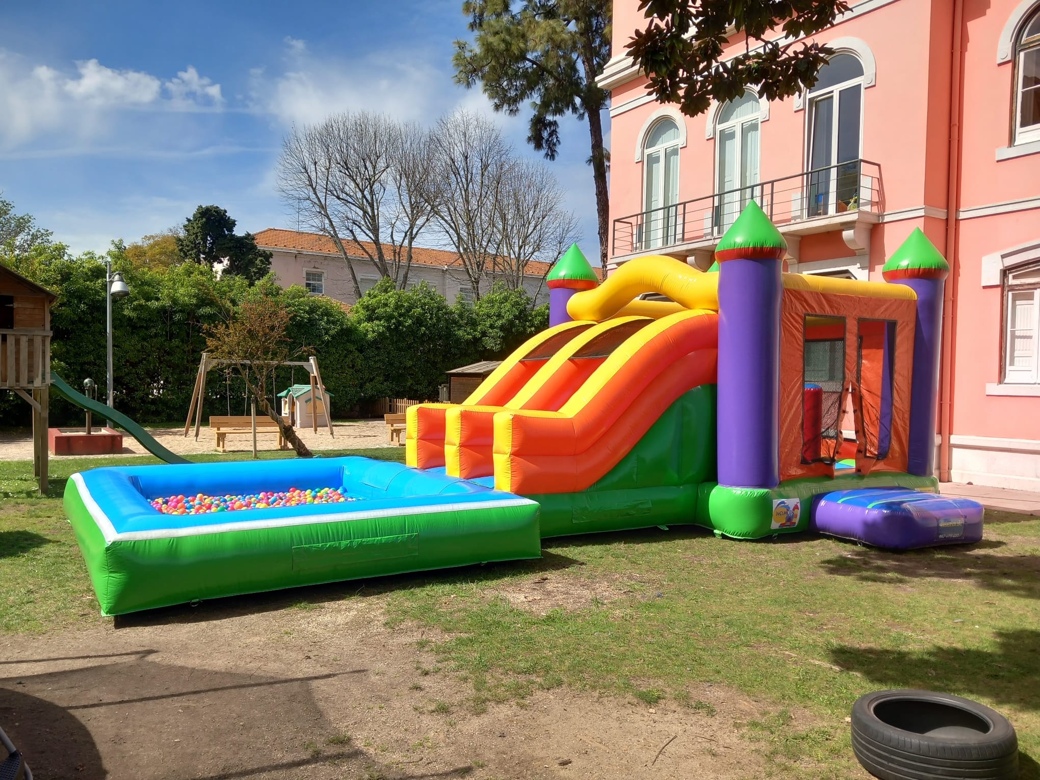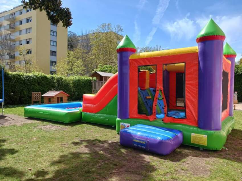 A montagem e desmontagem dos insufláveis, trampolins e piscinas são feitas pela equipa Insu4kids.