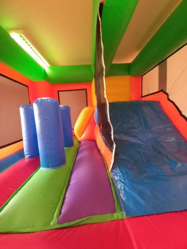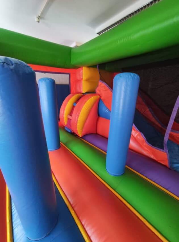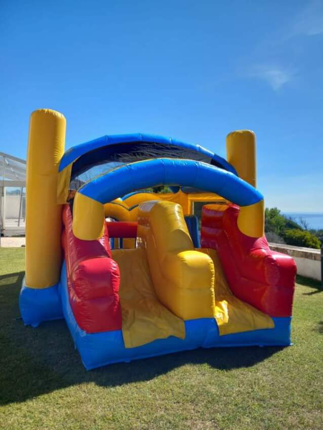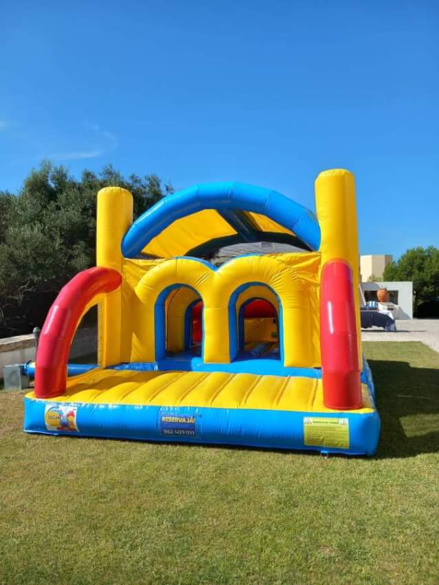 9. Podem existir pequenas diferenças nas medidas dos equipamentos. O cliente deve contar sempre com uma área de montagem superior à dimensão do insuflável. Nas medidas não está incluído o espaço para a tubo e motor dos insufláveis (cerca de 1m). As medidas incluem os escorregas e saídas dos insufláveis.